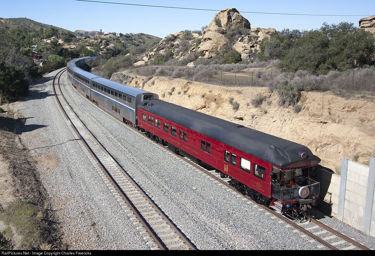 The private car Cyrus K. Holliday takes up the markers on the Coast Starlight.