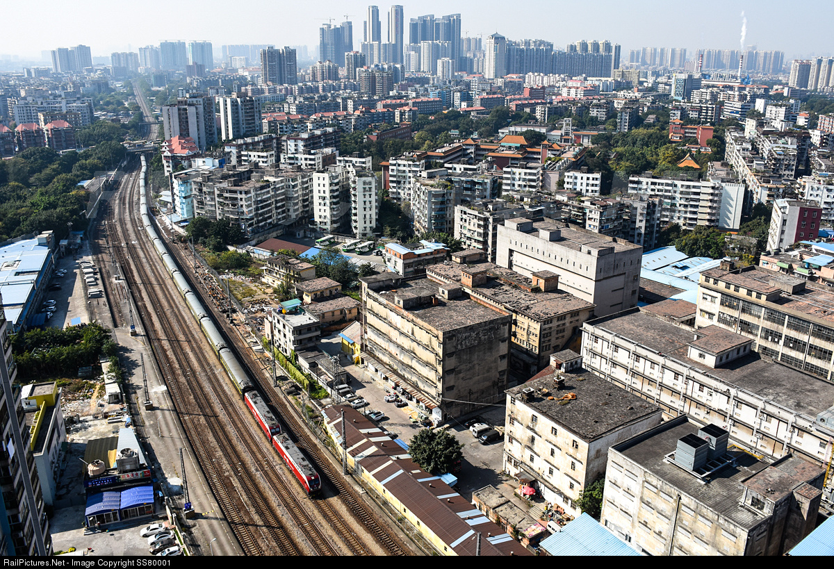 | Guangzhou-maoming railway. Train Z212(kunming-guangzhou) by two "HXD1D" locomotives pass the Guangzhouxi station. |
