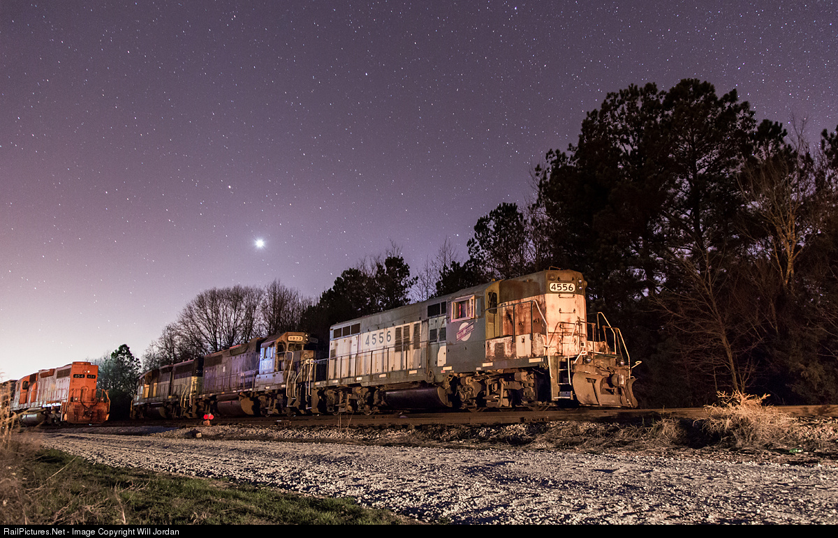 | Our planetary neibor Venus shines brightly overhead as a sky dotted in accompanying stars drifts over north Georgia while a silent night is had on the Hartwell Railroad. The Chicago Northwestern GP9 is still moving cars across the HRT after over half a century of serving America's railroads. |