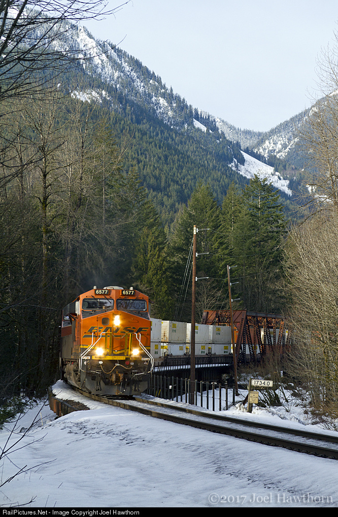 RailPictures.Net Photo: BNSF 6577 BNSF Railway GE ES44C4 at Skykomish, Washington by Joel Hawthorn