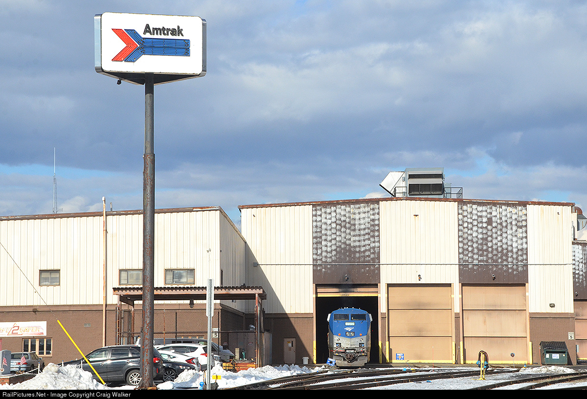 Poking out of Amtrak's Rensselaer shops on January 26, 2017 is 700, the "class unit" of the carrier's 18 P32AC-DM dual mode (both diesel and electric) locomotives. Soon, the 700 and its five-car train will emerge from the shops and wander to the nearby Albany-Rensselaer station, where it will board passengers and become train #242, an Albany-Rensselaer to New York Empire Service train. Photographed on railroad property with permission and full PPE.