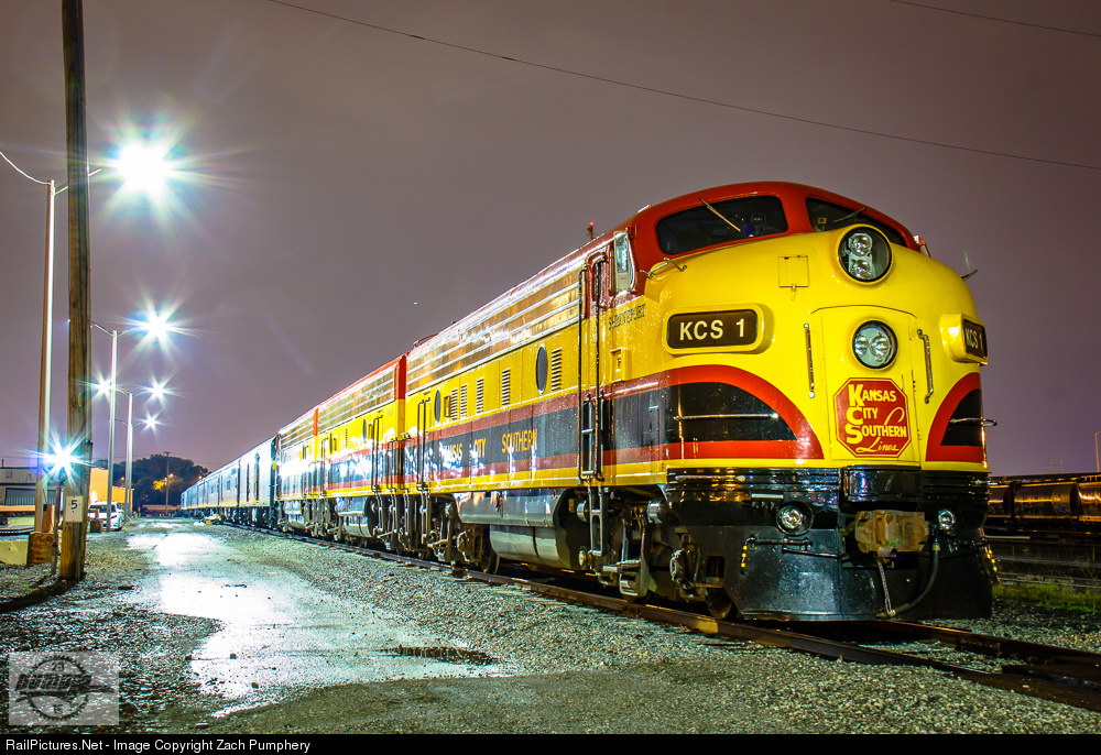 After leading KCS Train B-PAKC-19 into town today, the A-B-A F-Units slumber the night away in the Business Car Track at KCS Knoche Yard. They'll head back south on Saturday as the B-KCSH-21.