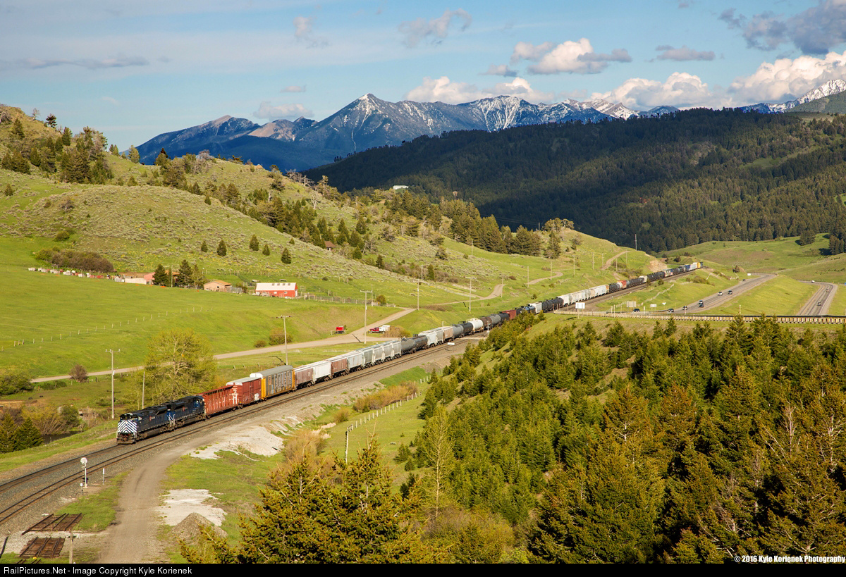After 20+ hours of driving from Michigan to Montana, myself and fellow photographer Michael Nowakowski finally made it to Montana. Rather than go to our hotel in Missoula immediately, we made stops in Billings and Laurel. While in Laurel, we lucked into a departing Laurel - Missoula mixed freight in great light. We gave chase, stopping in various spots along the way. Our last spot we "wanted" to get for the day was from atop Bozeman Tunnel. we got to the spot, and waited for the train to cut on its helpers and arrive. The delay was much longer than anticipated and while waiting, clouds started rolling it, the word "discouraged" doesn't describe my feelings well enough. However, in a moment of luck that is usually only found in sports movies, an opening of about 5 minutes came from the clouds, and like the convenient plot twist, the train popped around the corner into sight, and into the brief moment of sunlight that warmed the whole valley again just as the train was ready to enter the tunnel.