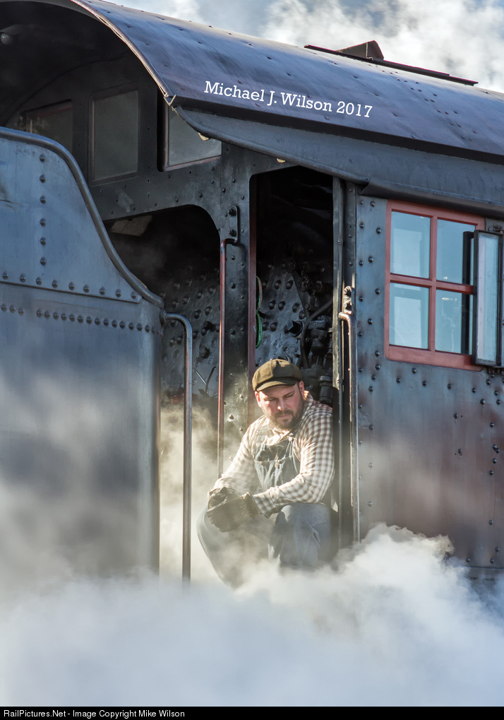 Steam envelops Engineer Dave Domitrovich who waits patiently on the deck plate of N&W #475.