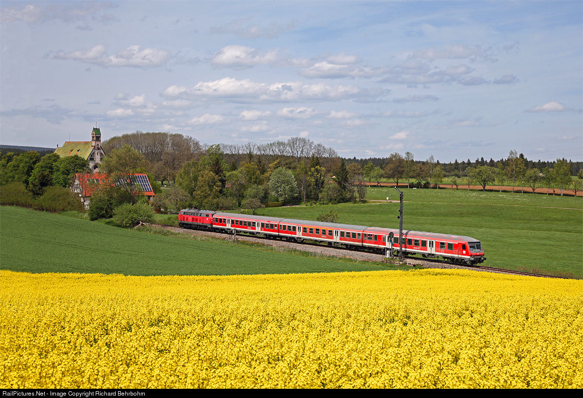 | 218 499 is pushing a Regional-Express Neustadt (Black Forest) – Ulm. 2016 was the last year with locomotive hauled push-pull trains on this line.