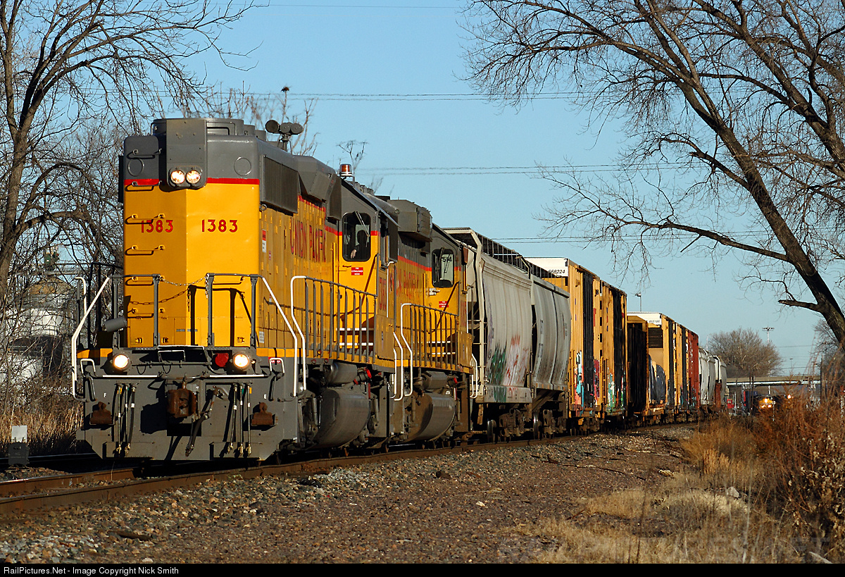 With a pair of backwards Ex-SP Geeps, UP Train LMR41 29 eases out of UP Neff Yard at Shelley Avenue on the UP KC Metro Sub. Main Track 4. It figures that the trailing GP62, which has been reconfigured to easily run long hood forward, is second out.