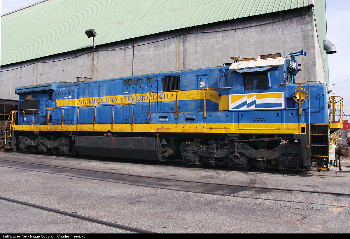 Metro Ports (formerly Metropolitan Stevedore) was still using an ex Santa Fe SF30C in 2011 to shove long cuts of cars up into Pier G Yard. Here is awaits its next round of work. (Photo taken on private property with permission while working for a Metro Ports vendor and while wearing full PPT).