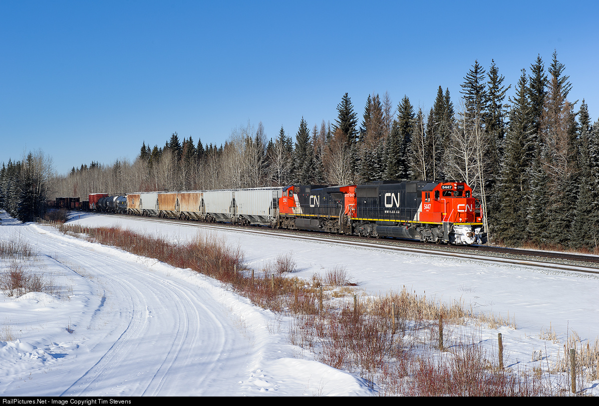 RailPictures.Net Photo: CN 5447 Canadian National Railway EMD SD60 at Leaman, Alberta, Canada by Tim Stevens