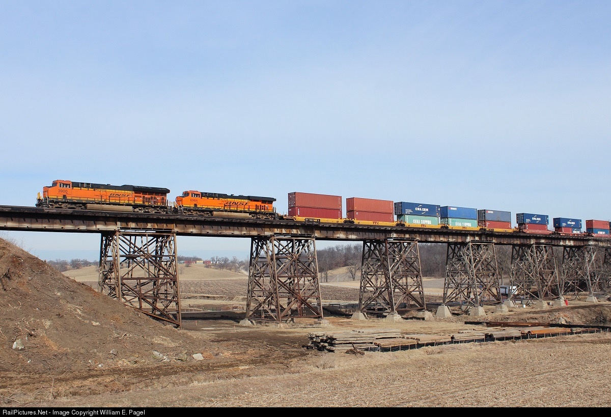BNSF 3900 leads a westbound stack train over the Media Trestle just east of Media, IL on the BNSF Chillicothe Sub.