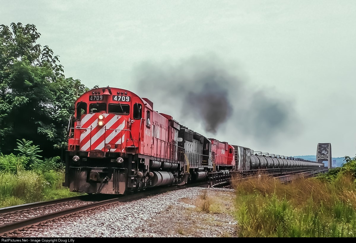 With approximately forty cars of sulfuric acid in the consist, CP/D&H train 700 rolls toward its destination of Baltimore as it crosses the CSX Susquehanna River bridge at Havre de Grace, Maryland. The train, which was carded as R140 after it entered CSX rails in Philadelphia, has an aged power set that is leaving plenty of unburned carbon along its route.