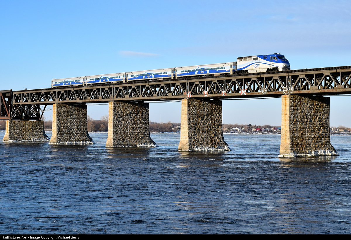 AMT 1327 pushes a deadhead move over the St. Lawrence River during the morning rush hour.