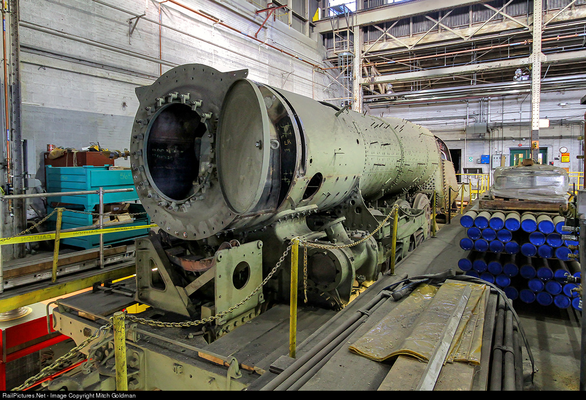 Steamtown's 1934 Lima built Boston & Maine 4-6-2 steam locomotive captured here in June of 2010 at the National Park's former DL&W shops undergoing a full restoration. The restoration to operation, on-going since 2005, has made significant progress and continues as funds and manpower permit. The latest estimate and goal for completion is now sometime in 2019. To follow the team's efforts, and perhaps make a donation to help expedite the work, click "here".