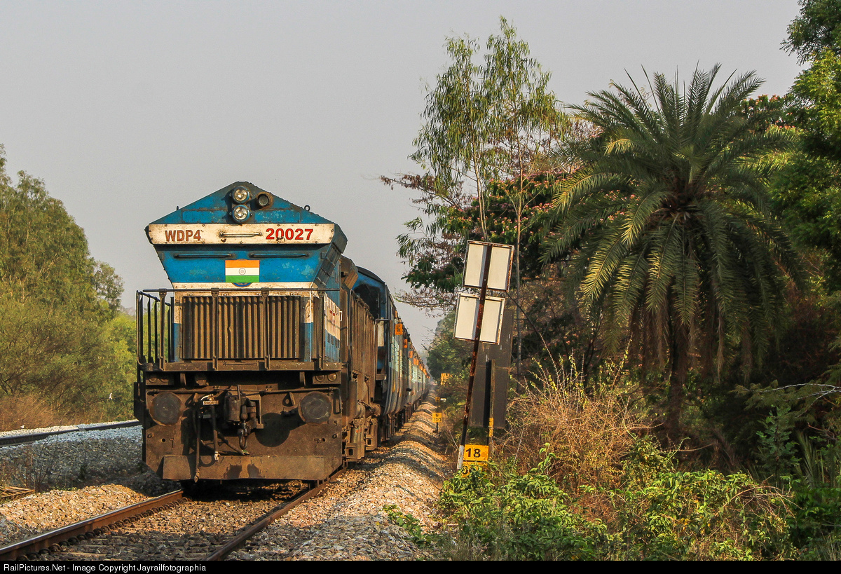 Long hood in lead, Hubballi shed WDP-4 hauling GolGumbaz Express, on its way to next stop at Yesvantpur Jn