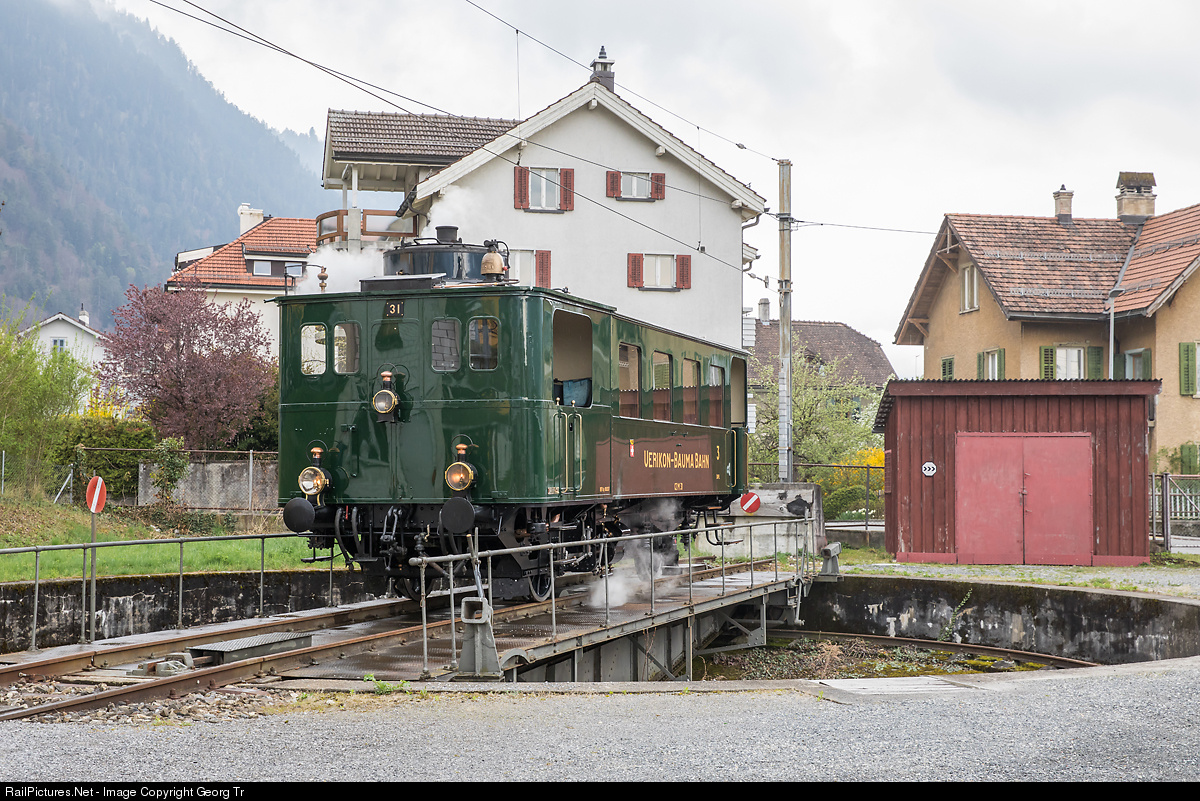 The unique steam railcar CZm 1/2 # 31, built in 1902 by Emil Kessler, Esslingen/Germany, running for SBB Historic, but operated and maintained by Dampfgruppe Zürich (Steam group Zürich), suffered severe damage in Sihlbrugg on 20th february 2016, when it had a brunt to wrong parked ballast cars. Now it is repaired in the RhB works at Landquart and made a successful test run today to Domat-Ems and back. On the return journey, the vehicle was turned on the turntable in Chur, so the footplate is in front again.