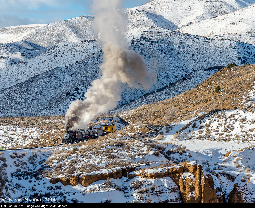 Charging toward Gold Hill. Our V&T Freight is working hard as she emerges from a shallow cut and approaches the Overman Pit, just prior to reaching Gold Hill, NV. After literally running circles on a steady 2.2% grade for the last 10 miles, she'll soon get a short breather as the last few hundred yards from Overman to Gold Hill Station are pretty flat. Unfortunately, her fireman had better not lose focus as the steepest half mile on the entire line lies just beyond Gold Hill. Only after she clears the Yellow Jacket Tunnel can her crew consider the heavy lifting pretty much done.
