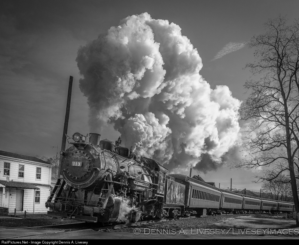 Spunky, chunky CNJ No. 113 blasts across Main St in Landingville, PA with a holiday train full of happy passengers. Engineer Christopher Bost is running at track speed but with No. 113's tiny 51" drivers, she sounded like she was doing 60MPH! You owe to yourself to see this one in person. More info at: www.rrproject113.org.