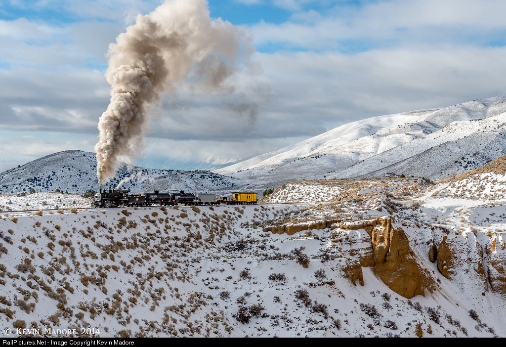 Steamscape: The Overman Pit. Under a partly sunny sky, a short V&T Freight makes the lonely trek across the high fill spanning the Overman Pit Mine, just south of Gold Hill, NV. On this frosty winter morning, both the scenery and the air temperature take your breath away, figuratively and literally! It's the reason why I consider this to be one of the most photogenic steam railroads in the country.