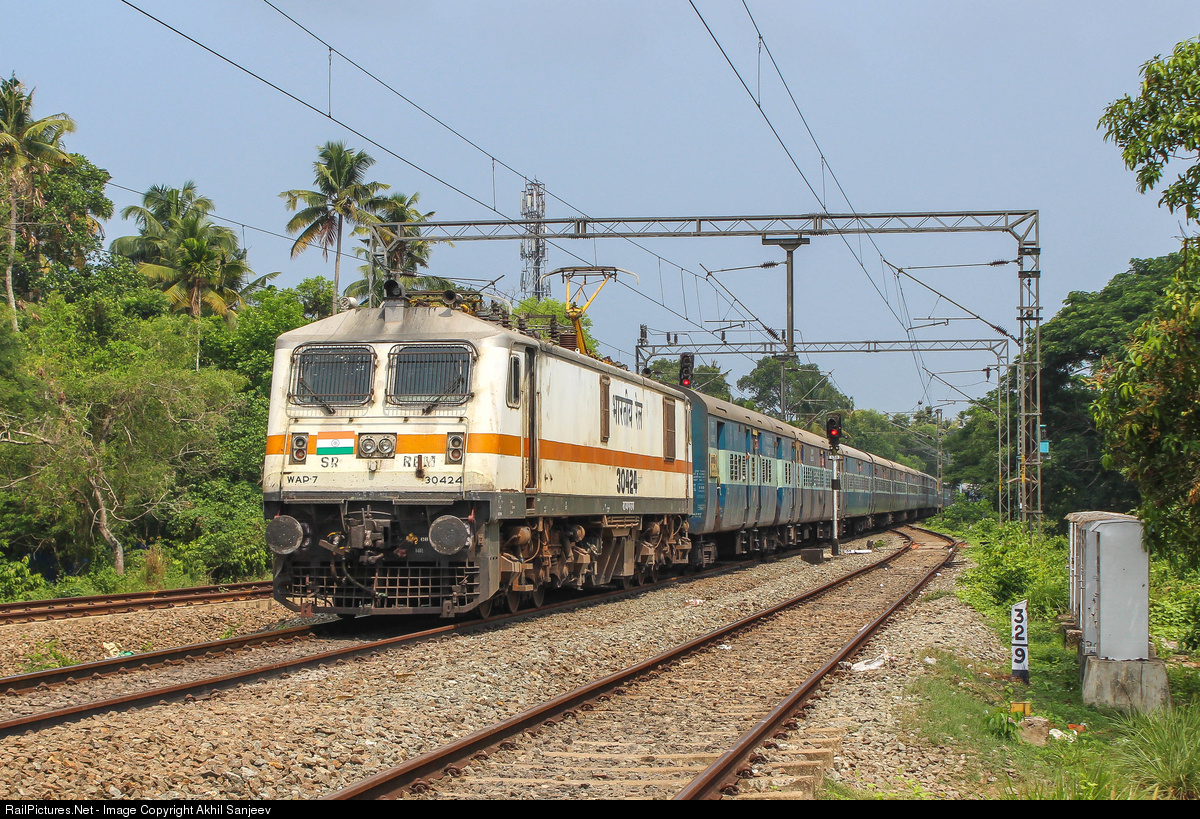 RailPictures.Net Photo: 30424 Indian Railways WAP-7 at Cherthala, India by Akhil Sanjeev