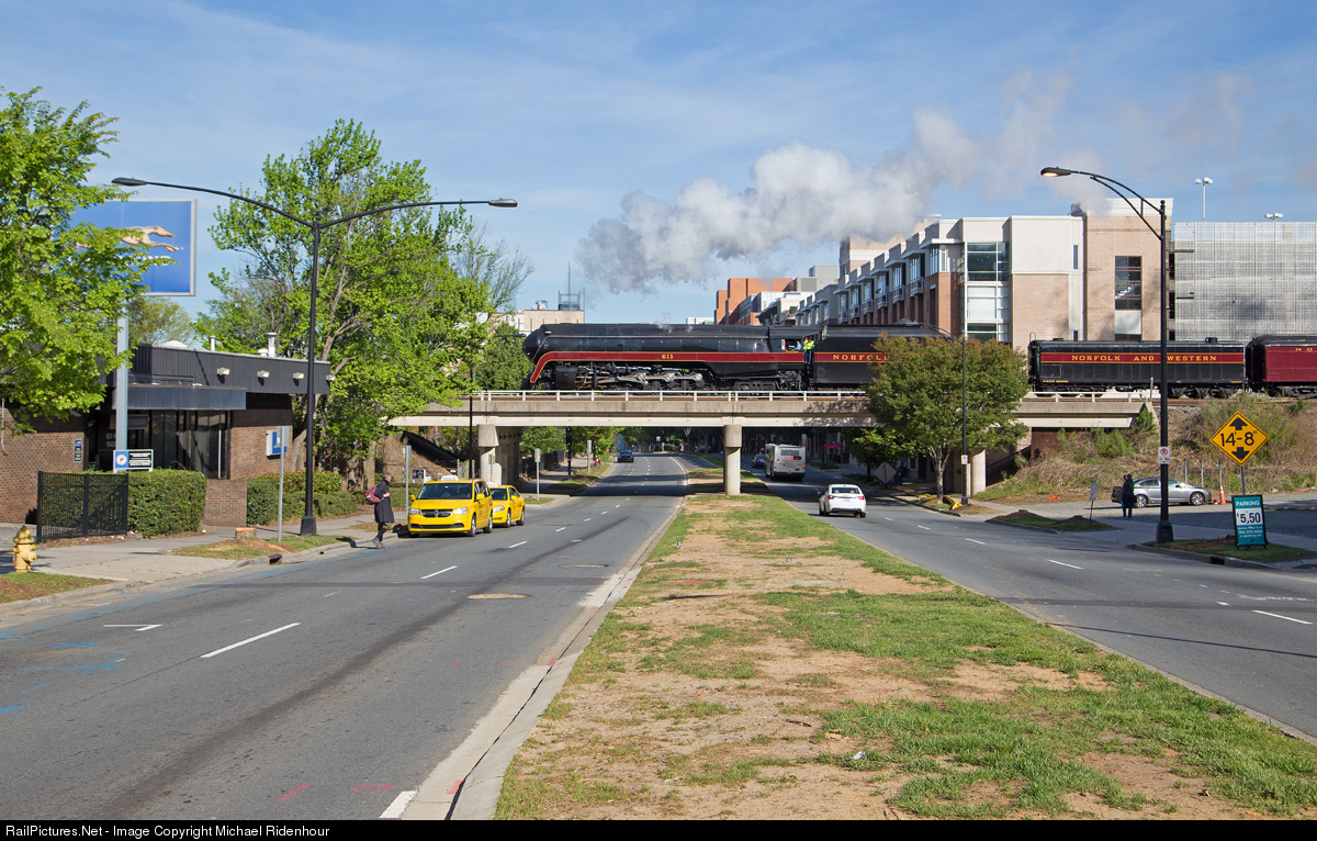 | N&W Class J 4-8-4 611 The Queen of Steam passes through the Queen City of Charlotte NC southbound on a roundtrip excursion from the North Carolina Transportation Museum in Spencer NC to Charlotte NC. |