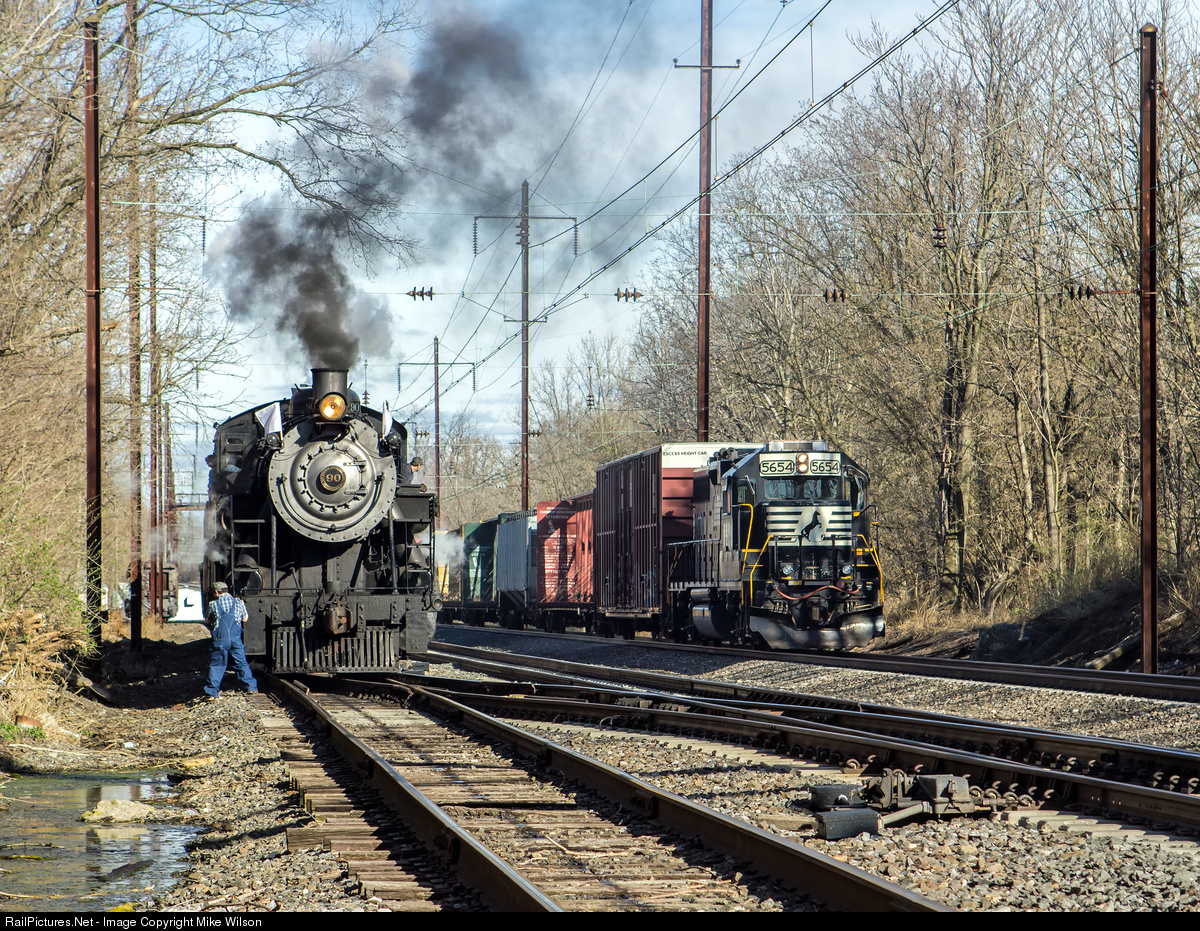 SRC #90 and a local NS freight give a present time Then and Now of railroading at Leaman Place Junction.
