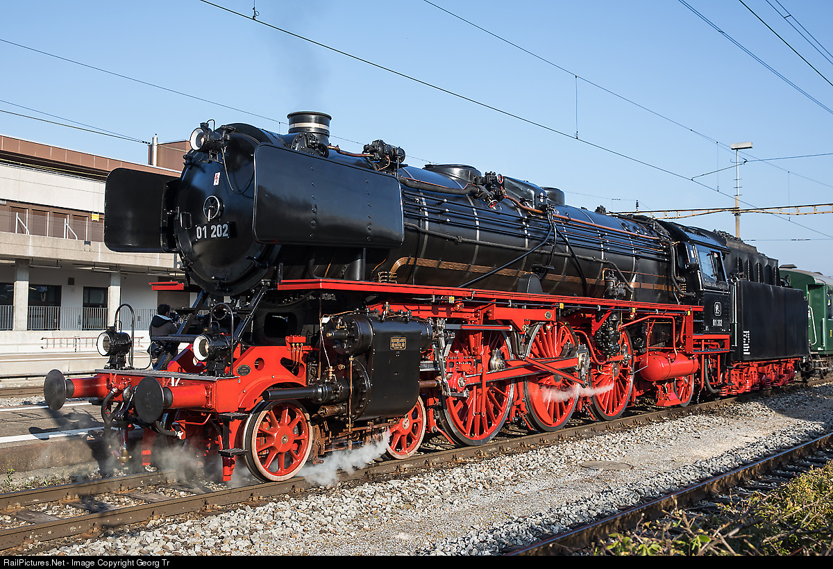 | 4-6-2 "Pacific" steamlocomotive of association "Pacific 01 202" at Lyss, ready for departure with the Zermatt Rail Travel charter to Brig. |