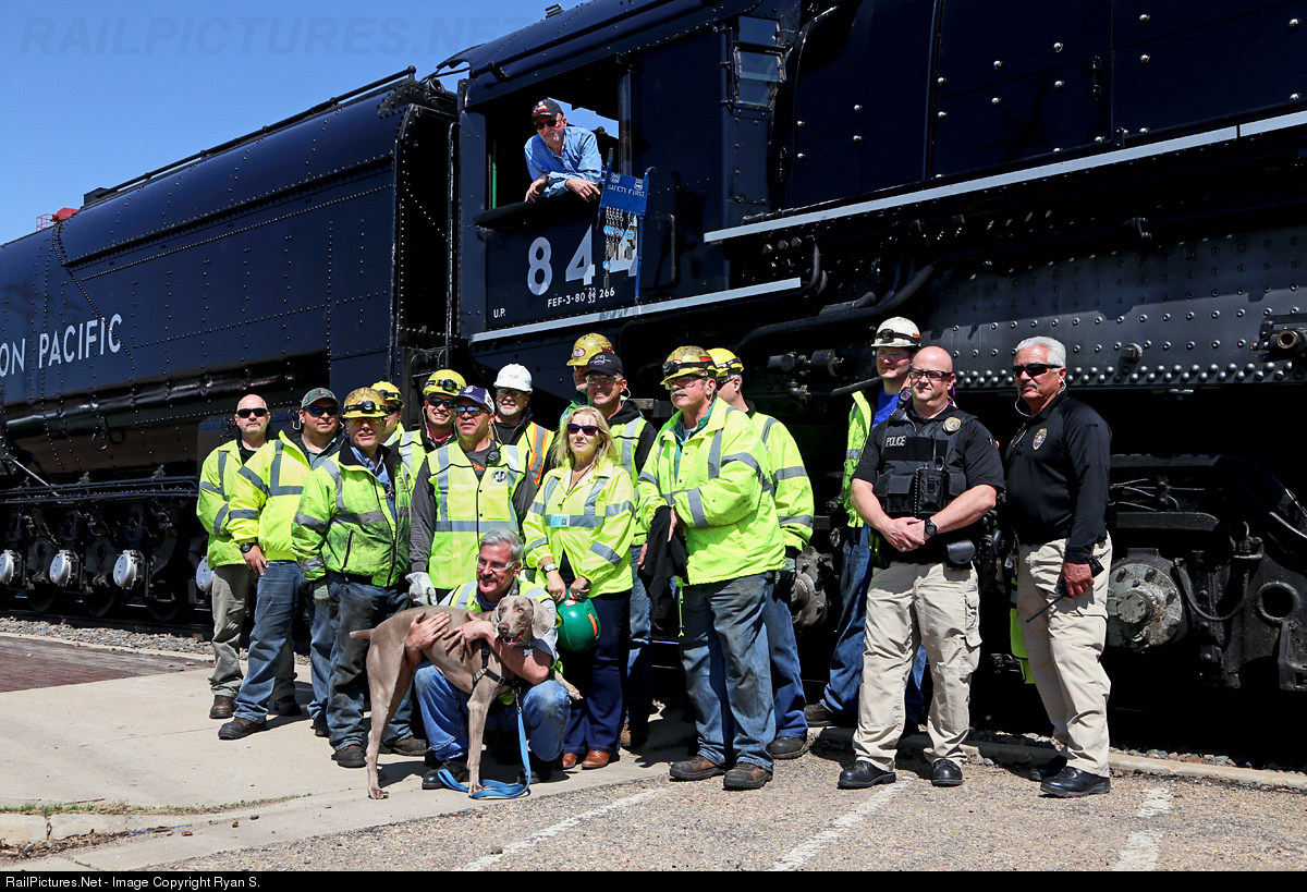 It takes a team. After a successful southbound 'break-in' run to Greeley, CO the Union Pacific steam crew takes a moment for a group photograph. Along the way hundreds of folks watched as 844 stormed through, school children along the train's route were even brought out to witness the passage of a living link to railroad history. How many memories created along the way must truly be a staggering number, inspiring fans of the hobby and maybe one day railroaders. One thing is for sure, we have this group of individuals to thank for keeping Union Pacific's Proud Heritage alive.