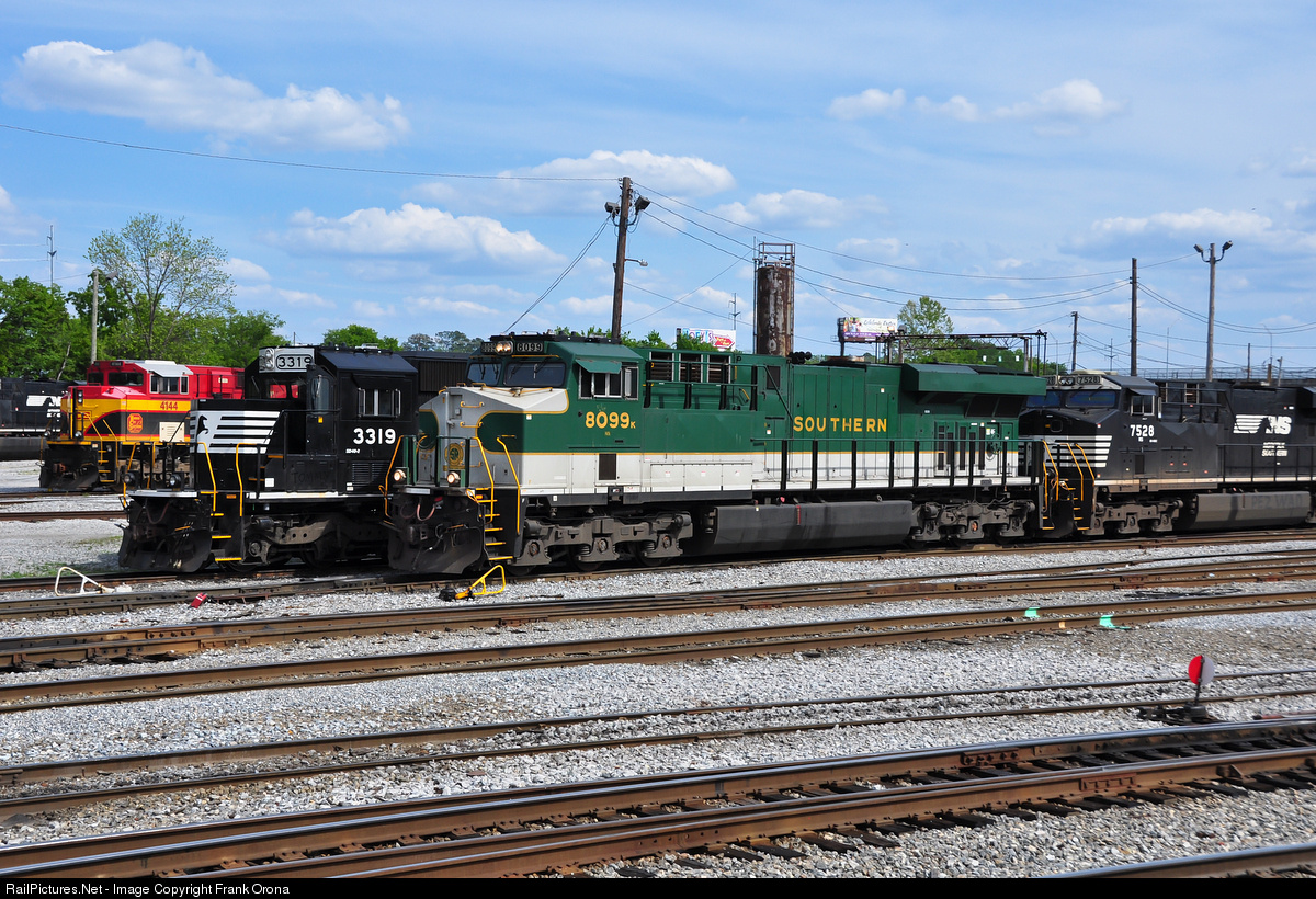 | Quite the assortment of paint schemes are present in Columbus today. From a KCS Southern Belle in the background to the actual Southern heritage unit at the front, a colorful collection of locomotives make up the afternoon action at the NS yard here. |