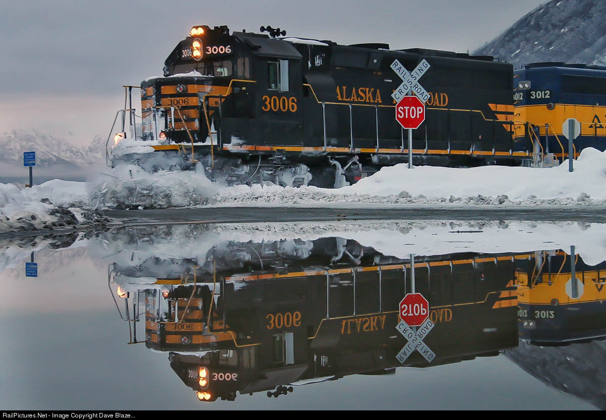 Near the very end of March Southcentral Alaska got hit with its last good snow dump of the winter season. Nearly a foot fell in some places and the fresh afternoon snowfall coincided fortuitously with a southbound freight from Anchorage to Whittier. As a bonus one of the ARR's three geeps remaining in their original as delivered 1976 paint job was on the point. Naturally a chase ensued!