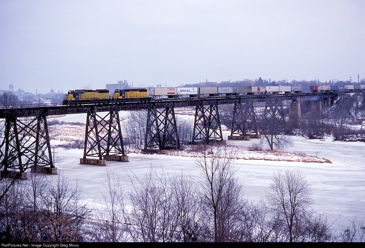 The one and only.... CNW's one-of-a-kind SD-Cat #6000 leads a train across the Manitowoc River bridge in Manitowoc, WI in February of 1988. While the weather was not the greatest, chasing a rare bird like this was worth the effort.