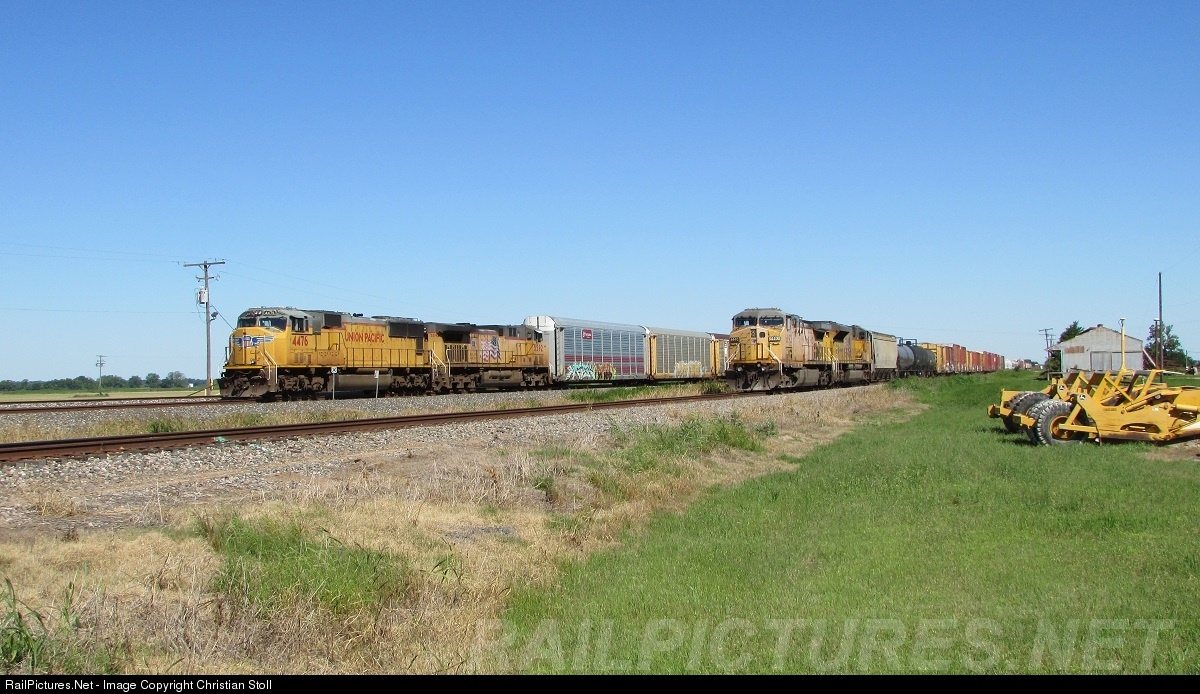 Two trains wait for a clear signal on two separate mainlines. The 6692 is on an Ex-Mopac line, while the 4476 is on an Ex-Southern Pacific line. Unfortunately, both trains would be waiting for a while. The 6692 had another freight directly in front of him and two more behind him all the way to Valley Jct. The 4476 is waiting for some power swapping in front of him. The SP line, going North, crosses over the Mopac line at grade and goes to Hearne, connects with another SP line, where it crosses another Mopac line. The Mopac line goes to Valley Jct. where it crosses the second Mopac line mentioned earlier. This photo was taken North of Mumford where the two lines parallel each other until the crossover. There is rumor about a huge classification yard being built around this area. In fact, in Mumford, an old Post Office and Homestead was torn down due to this construction, but has been halted. If anybody has any info about this yard, please say so in the comment section. Photo taken from public property.