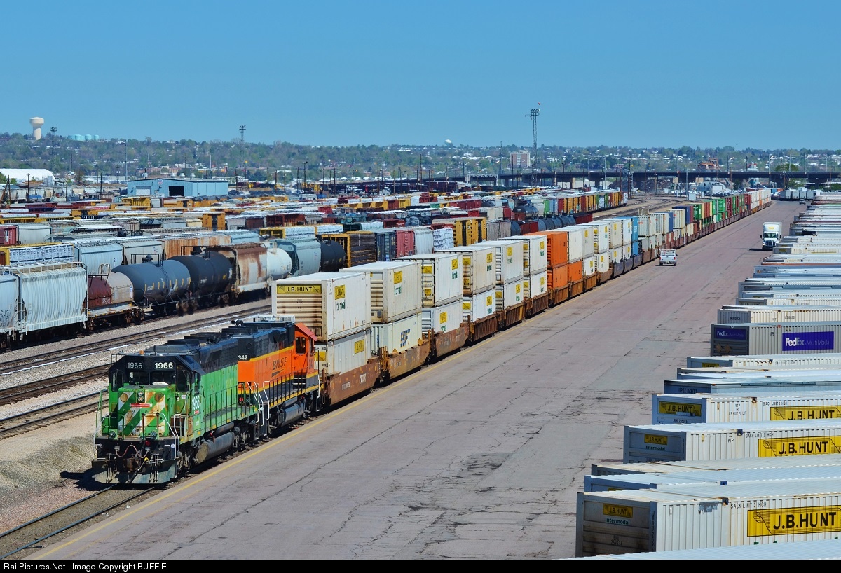 BNSF 1966 (SD40-2) works the intermodal facility adjacent to the UP's North Yard in Denver.
