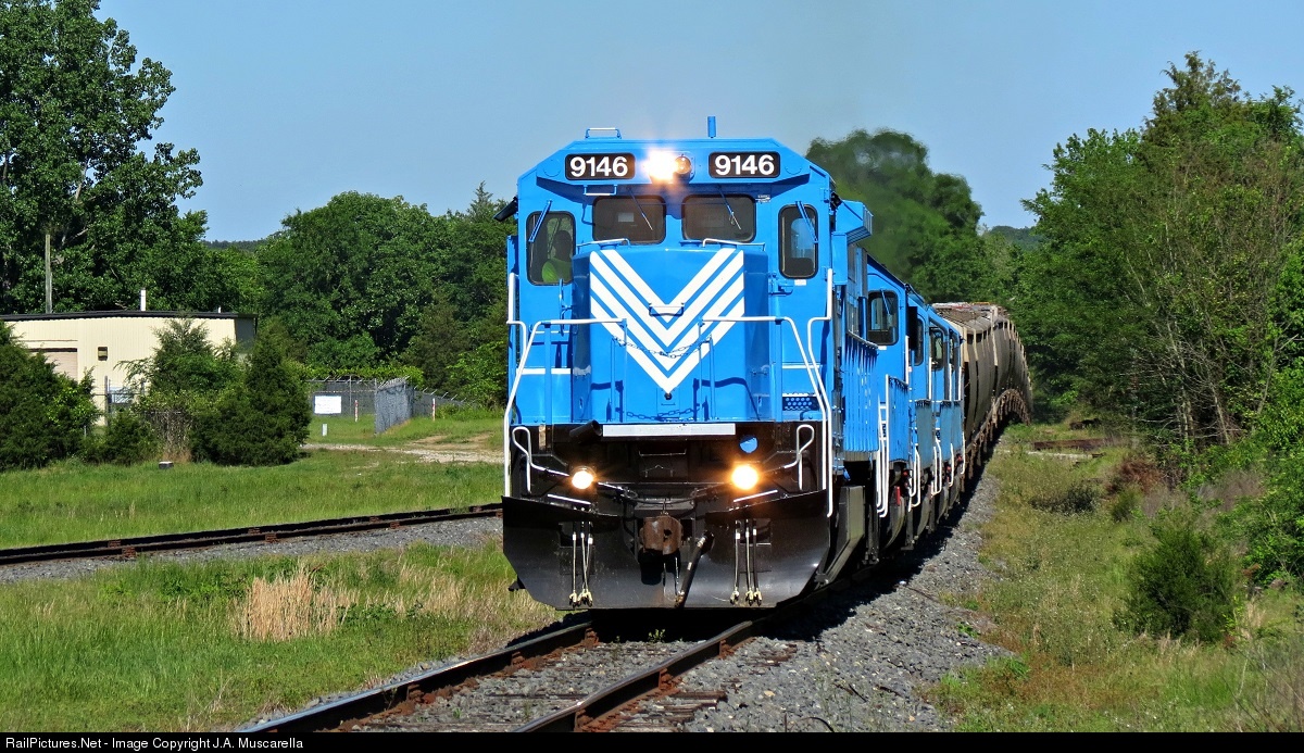 | With a rare leader in charge of an empty grain train, the Lancaster & Chester crew are pulling through the Circle S Feed Mill area. They have had this Dash 8 Slug Set for well over a year now. But it has only been in the lead a handful of times. Most of 9146 and 6002's life on the L&C has been spent basking in the Chester sun with various mechanical issues. But today they were earning their keep! |