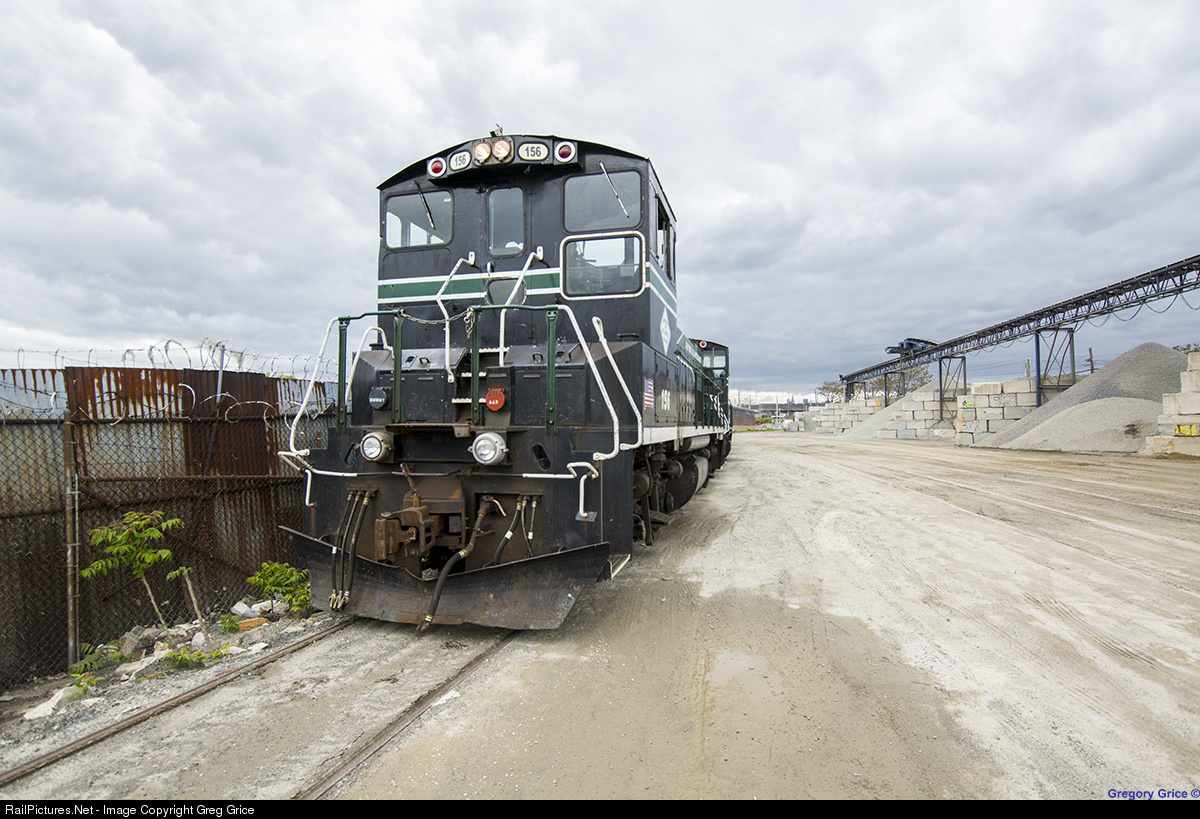 New York & Atlantic Railway's RS-20 shoves past Sky Materials on a rare daylight trip down the Navy Lead to spot a box car at LeNoble Lumber.