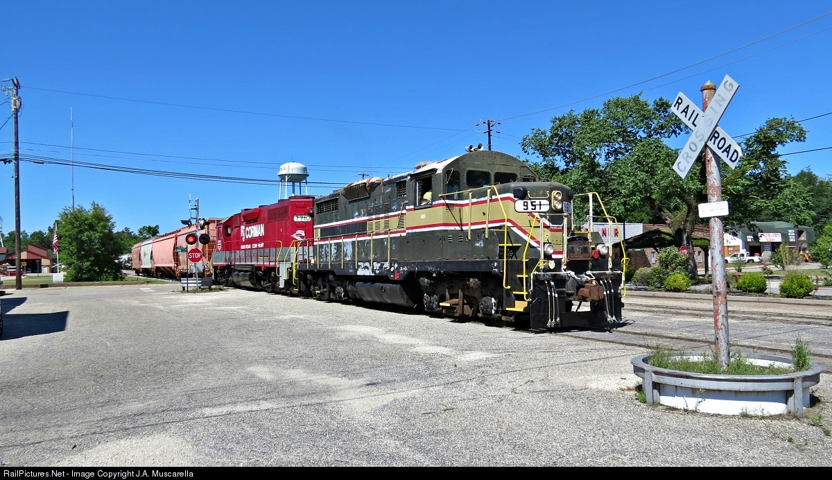 The sleepy rural community of Nichols, SC is getting back on its feet after flooding from Hurricane Matthew ravaged the town some 6 months ago. Virtually the entire town was flooded and almost all the locals were forced to leave, many returning to find their homes a total loss. In a small community like this, the devastation continues for many months to come. Even today, very few businesses are open in the town. One business that is fortunate to be up and running is Carolina Eastern. Here they are having their Potash cars picked up by the RJ Corman crew as the train runs the "street" in downtown Nichols with the former Carolina Southern 951 leading.