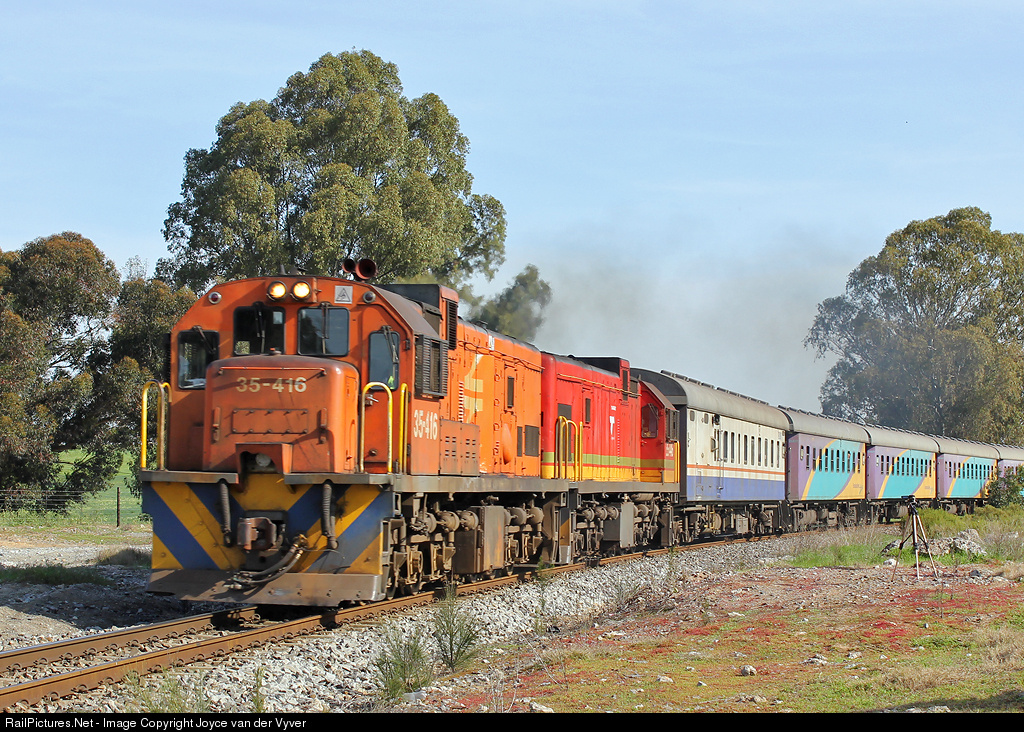 The Malmesbury Metro races north here between Kalbaskraal and Malmesbury with 35416 leading.