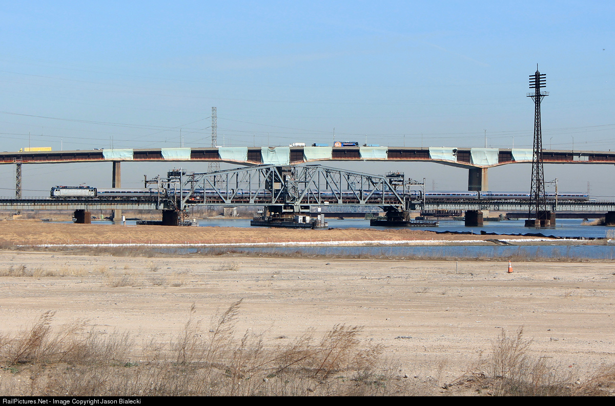 Meatball on the Portal - The AEM-7s have all been retired, but not this 100+ year old bottleneck on the Northeast Corridor. Here at the Hackensack River 4 tracks merge into two with a speed restriction of I believe 35 mph. I am a fan of these old drawbridges, but my thinking is that the commuters are not.
