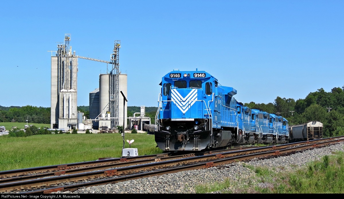 | With a rare leader in charge of an empty grain train, the Lancaster & Chester crew are pulling through the Circle S Feed Mill area. They have had this Dash 8 Slug Set for well over a year now. But it has only been in the lead a handful of times. Most of 9146 and 6002's life on the L&C has been spent basking in the Chester sun with various mechanical issues. But today they were earning their keep! |