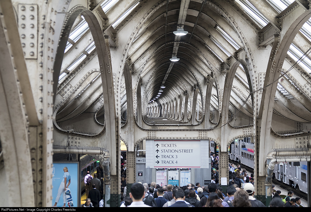 The industrial-aged clerestory roof of Penn Station Newark runs on the platform between tracks 3 and 4 and can be looked straight down when coming down the ramp from the PATH's second story inbound platform.
