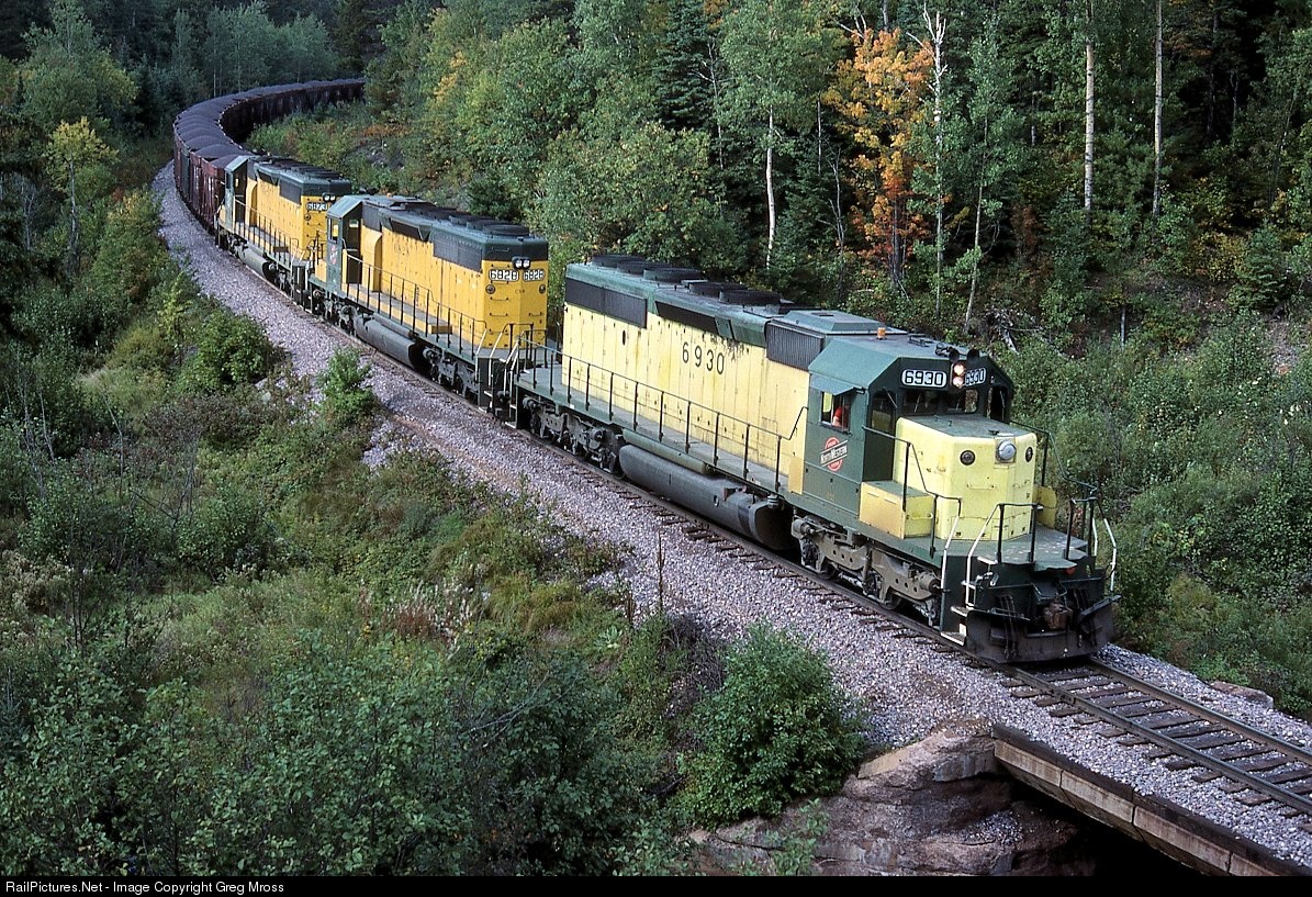 It's funny how time changes your point of view. After shooting big Alcos coming under Hwy 35 near Partridge Siding, it was a bit of a letdown to shoot SD40-2's here, especially with a repainted Zito yellow one on the point. Fast forward 30 years and the CNW becomes the UP, then the WC, and finally the CN. Close the Empire Mine and ore trains have pretty become extinct here. That light yellow EMD doesn't look so bad anymore....