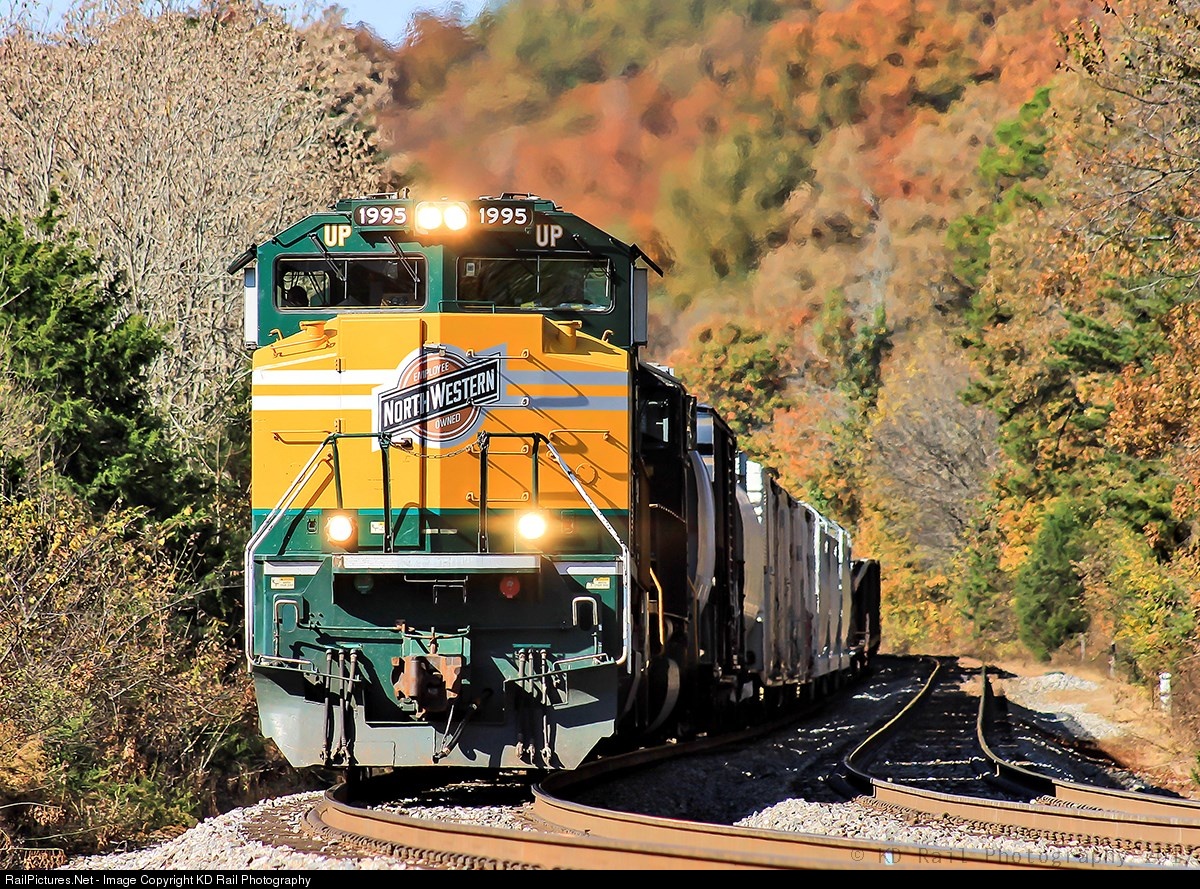 NS 362 (CSX Z346-02) is easing down Raccoon Mountain grade through Wildwood, GA (MP J-141.9 Wildwood), the trackage rights train is no less than 4 rail-miles from getting off the CSX Chattanooga Sub, via the CSX/NS Connection track, and run back on it's home rail to Chattanooga, TN. On the head of this heavy manifest is UP 1995 one of six Union Pacific Commemorative Heritage Locomotives making a rare appearance in the southeast far from its home rails on the Union Pacific System. With the fall foliage, and the UP 1995 at the lead make its a very beautiful picture perfect moment.