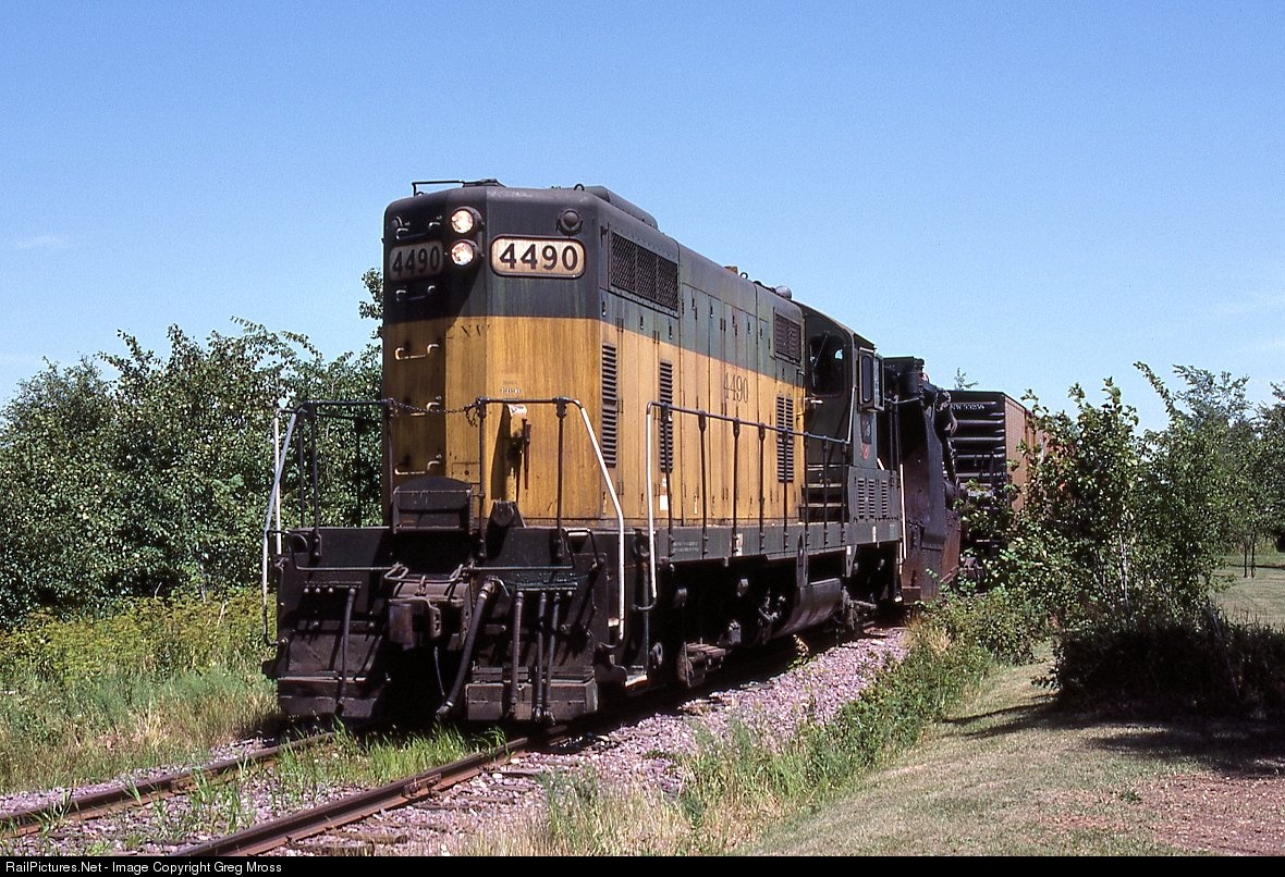 CNW 4490 is westbound between Fond Du Lac and Rosendale, WI in July of 1985. The train is heading towards Ripon on a line that would be abandoned a year later. A Jordan Spreader is tucked in behind the Geep. I wish I would have chased this train some more, even at 10 mph!