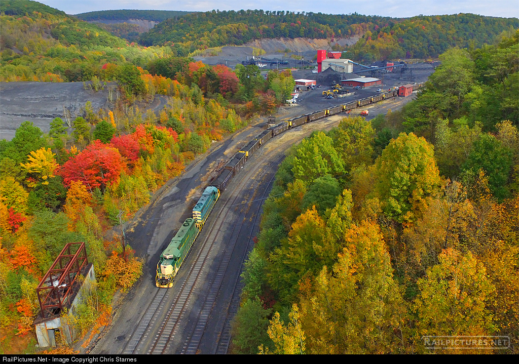 | A pair of R&N SD38s power a export coal train in the process of being loaded near Minersville, PA. [Oct. 2016] |