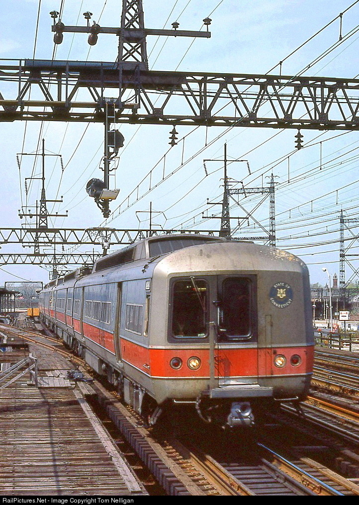 A set of Metro North M2 class MUs bound from New Haven to Grand Central approaches the Bridgeport, CT, station, traveling on the viaduct built by the New Haven RR in the early 20th century. The track diverging to the left, now long gone, was once the connection to the ancestral Housatonic RR of the 19th century.