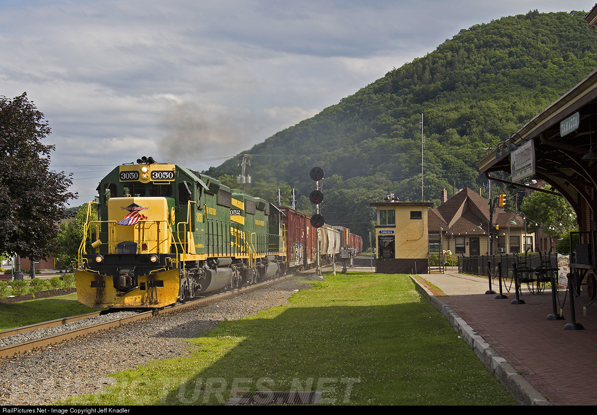 | Storming up grade, through downtown Tamaqua, the NRWH-04 makes a run for the mountain on this beautiful 4th of July 2017. The two SD40-2's have the sand, exhaust and Old Glory flying proudly as they attempt to make every bit of track speed on their way back to West Hazleton. |
