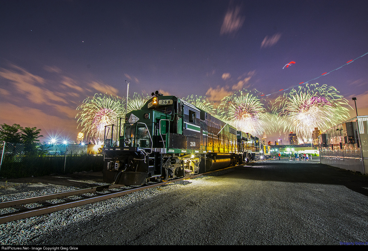 "NYAR & Fireworks at Long Island City" On the night of July 4th, New York & Atlantic Employees came together to run a special train down to Long Island City to view the Macy's 4th of July Fireworks Show with their families. The train consisted of 2 engines & their caboose, NYAR 52.