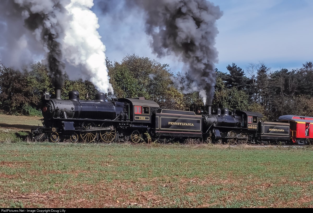 The first double-headed Pennsylvania Railroad steam combination since the PRR dropped its fires in the 1950’s pull a train out of the Groffs siding on the Strasburg Rail Road in 1983. The pair would serve individually and as a pair until 1983, when evidence of thin firebox walls permanently consigned both locomotives to the Railroad Museum of Pennsylvania in 1989. The only currently-active PRR steamer is 0-6-0 653 at Williams Grove, Pennsylvania. With only K4s 4-6-2 1361 having any prospects of ever returning to service, it is highly unlikely that we will ever see another pair of PRR steam locomotives working together.
