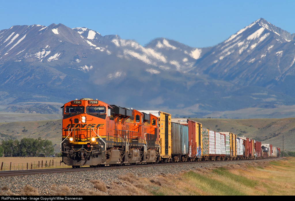 Heading out of Big Timber, Montana, beneath the Crazy Mountains on the morning of June 25, 2017, is an eastbound BNSF freight on Montana Rail Link’s Second Subdivision.