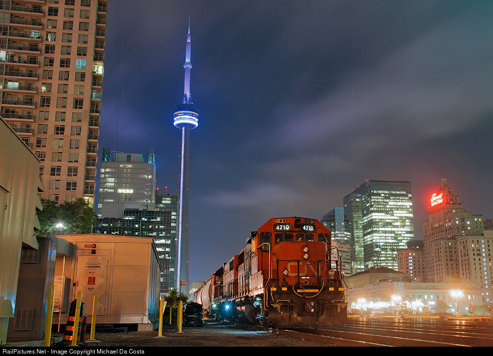 Last Call! We sit by Scott St on the east side of Union Station waiting on a foreman to clear before proceeding east to the Toronto Harbour Spur with 8 cars on the hook.