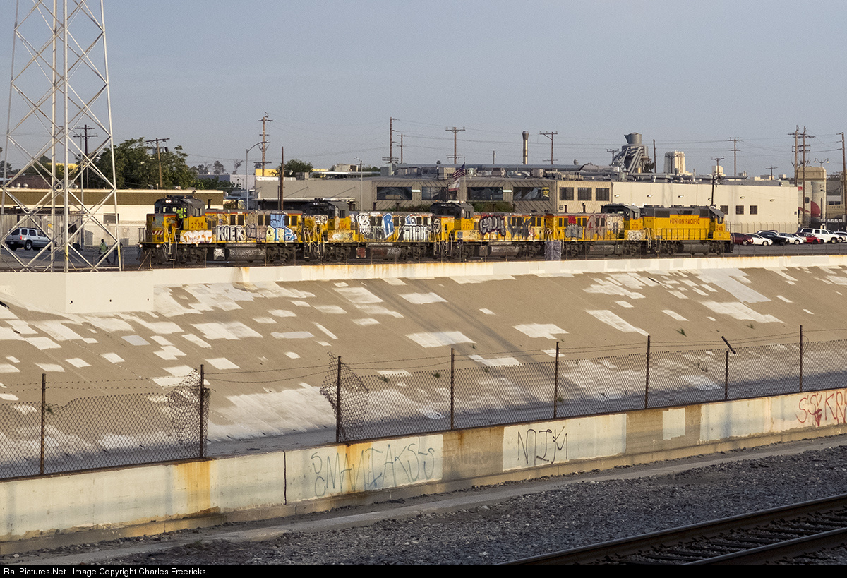 The El Segundo ties up its power on the Myers Street Team Track. Note that the GP38-2 in the back of the consist has not been tagged. As of my posting this, five days later, it's still not tagged. Rooting for the old GM!