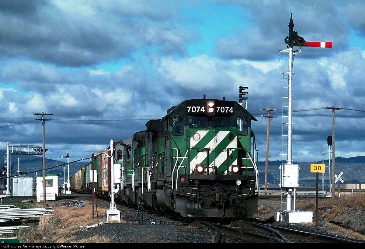 A southbound BNSF manifest rattles over the Modoc Line diamond at Stronghold. Although replacements are waiting to be cut in, the ex-Great Northern semaphores protecting the crossing survived long enough to be California's last active semaphores on a Class I mainline.